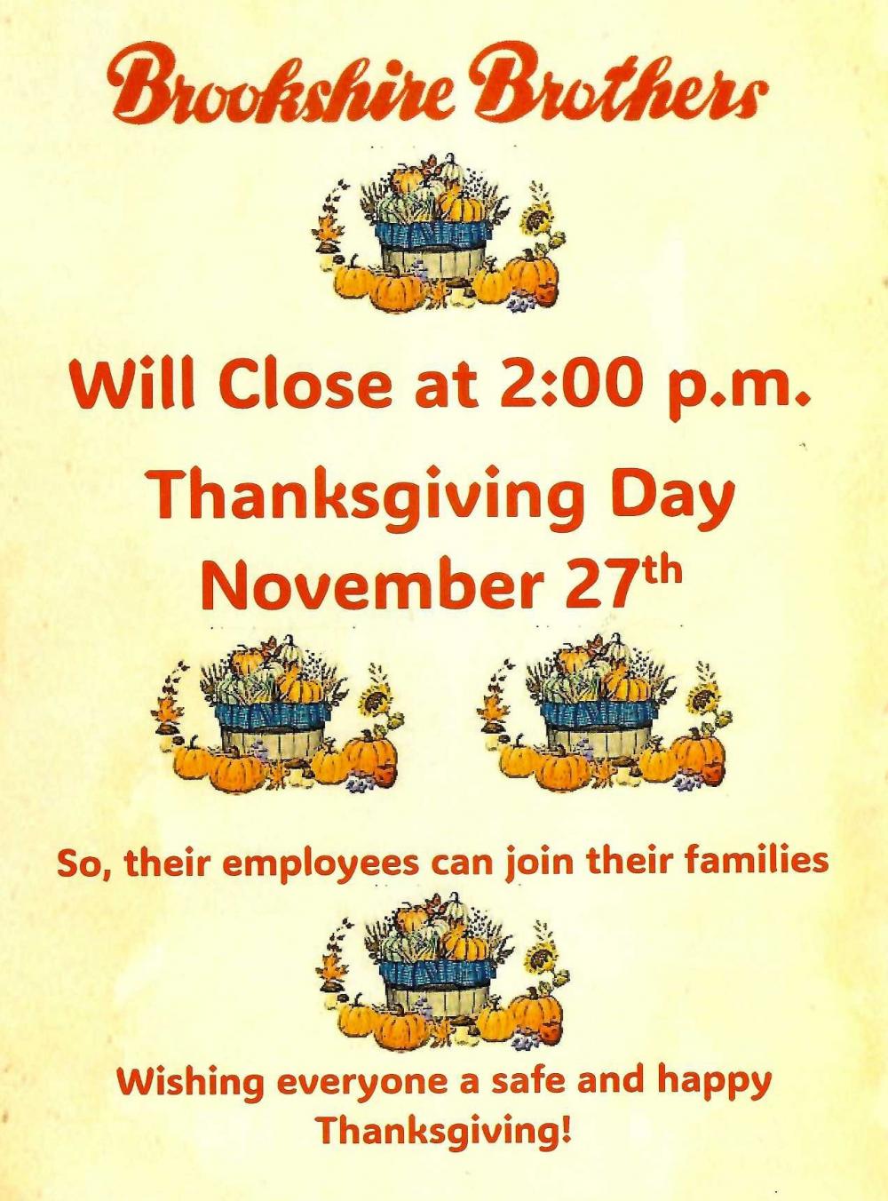 Brookshire Brothers Grocery store will close at 2:00 p.m. Thanksgiving Day, Thursday November 27th. so their employees can join their families.