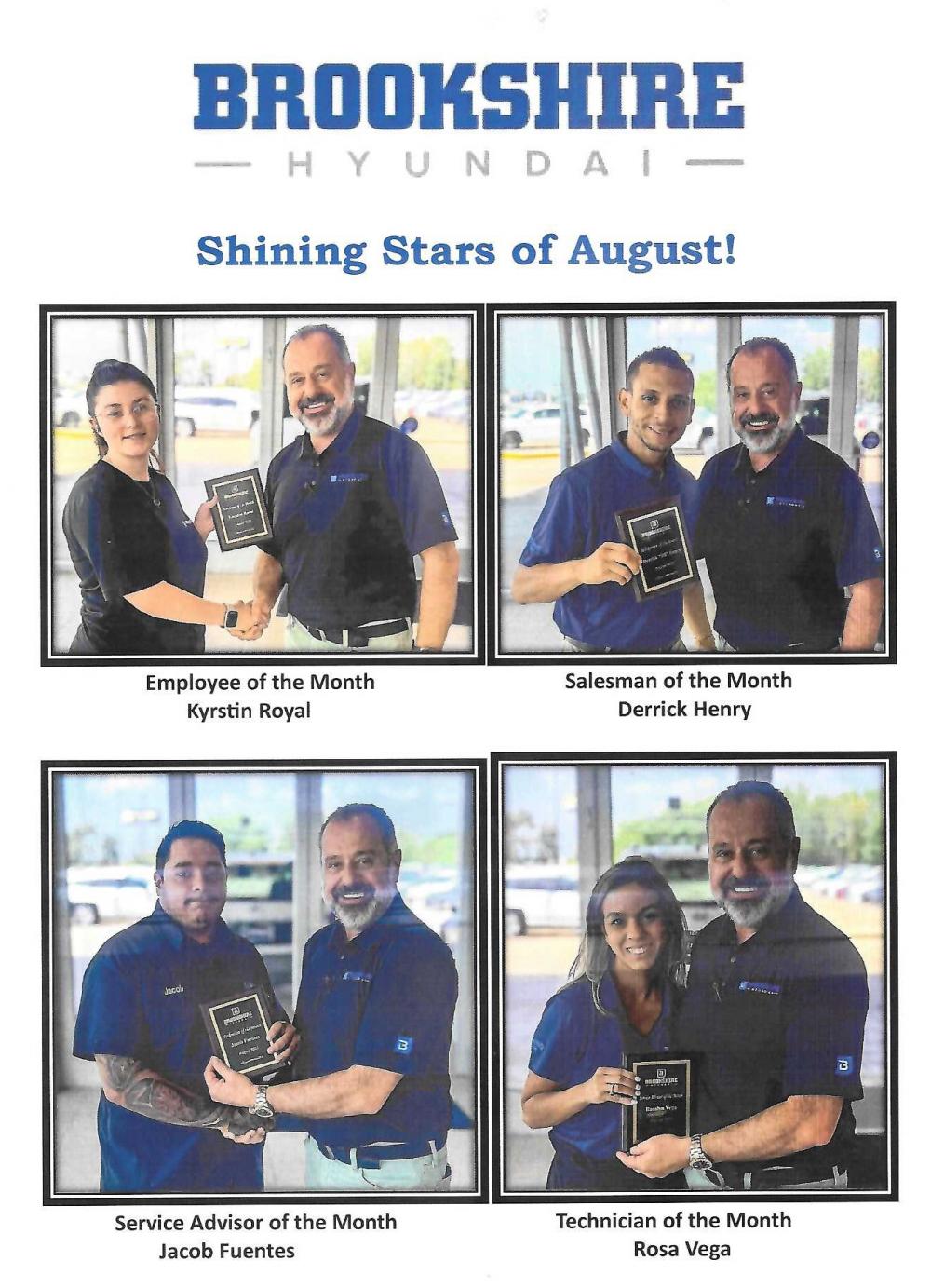 They’re proud to spotlight the outstanding team members who went the extra mile last month. Their hard work, dedication, & positive energy help make Brookshire Hyundai the best place to be!