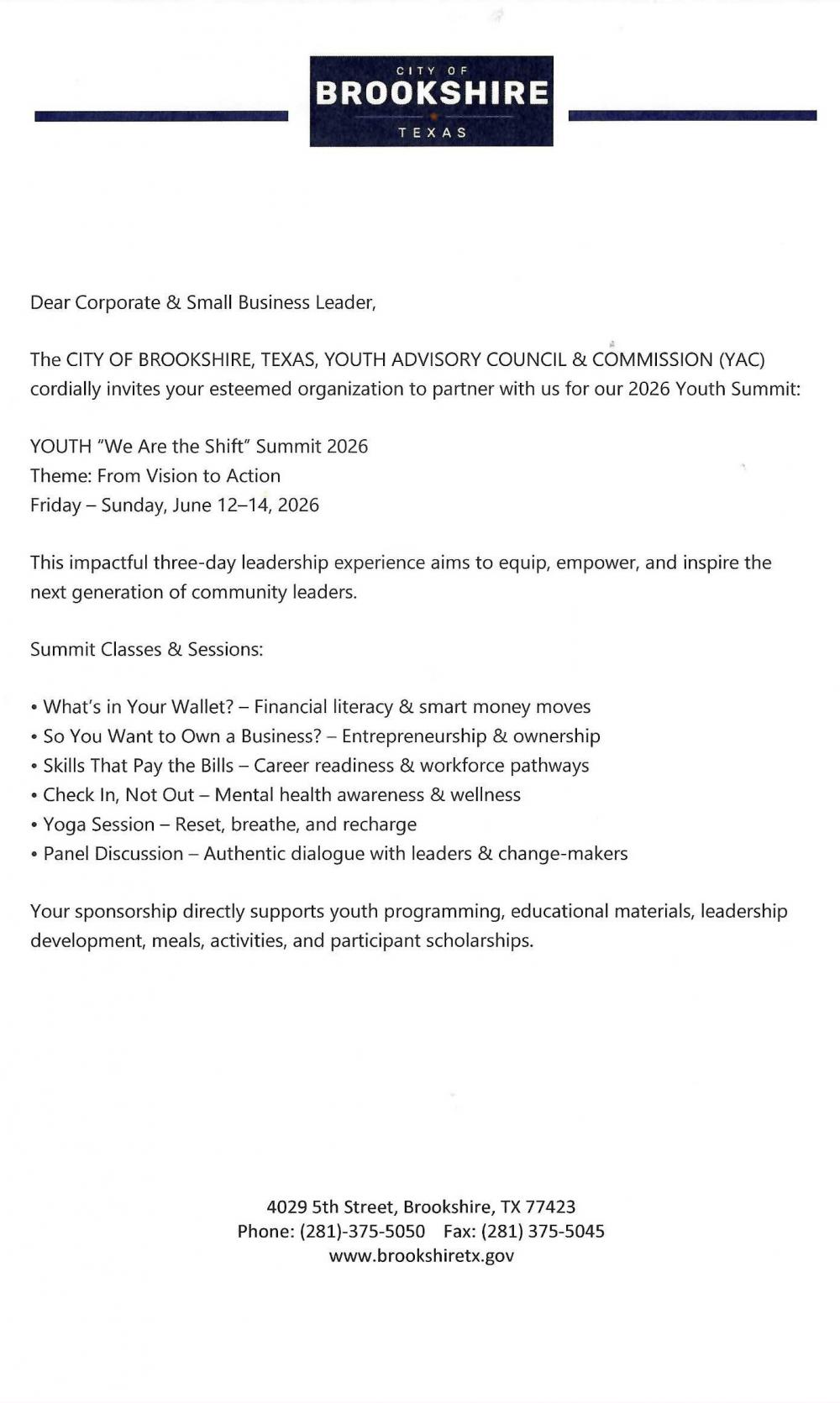 How would you like your business to partner with the 2026 Youth Summit?