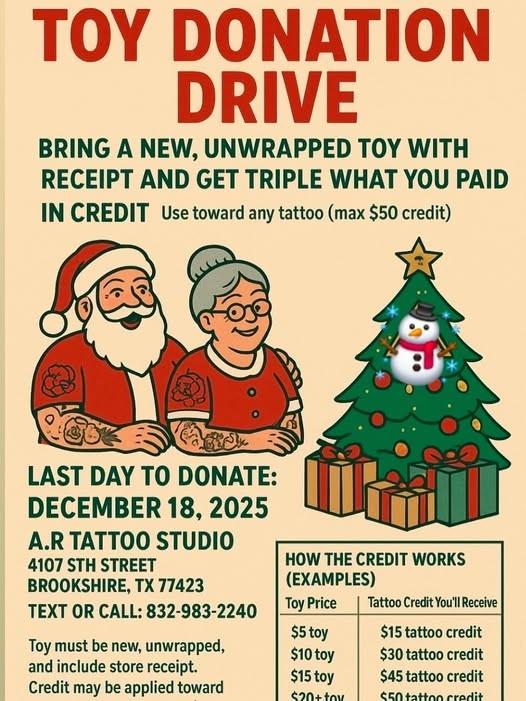 Bring a NEW, UNWRAPPED toy with receipt and GET TRIPLE WHAT YOU PAID IN CREDIT