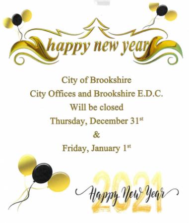 City of Brookshire City Offices and Brookshire E.D.C. will be closed Thursday, December 31st and January 1st.