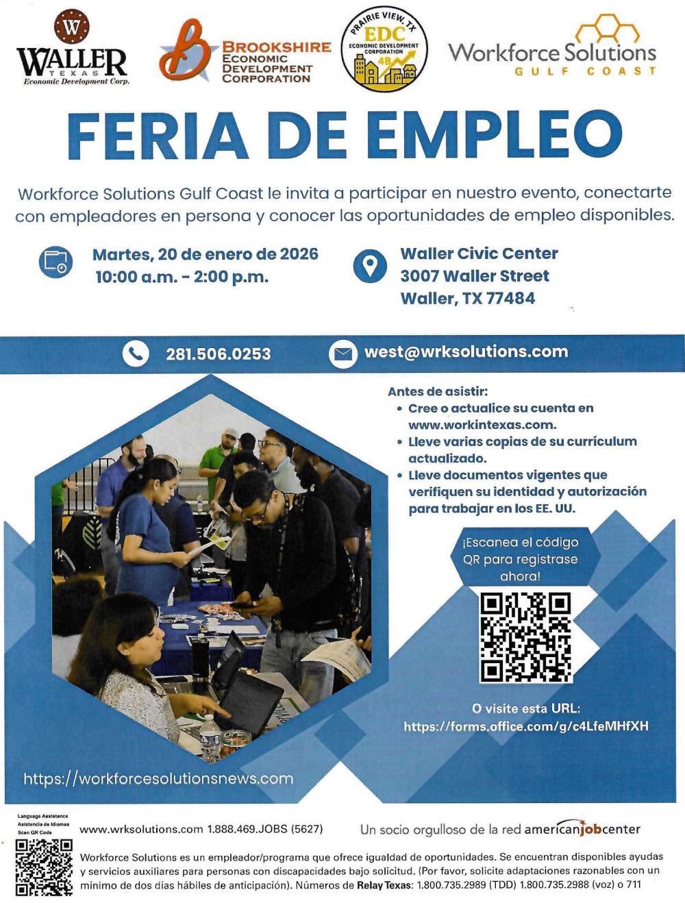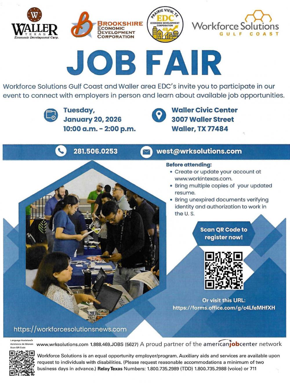 Work force solutions Gulf Coast and Brookshire EDC invites you to participate. Come and learn about the available job opportunities.